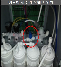 다음은 물 공급 호스가 잠겨 있는 경우입니다. 저역시 이런 경험을 많이 하곤 합니다. 정수기와 연결된 수도관의 단수 여부를 확인합니다. 또한 정수기에 연결된 호수가 잠겨 있거나 꺾여 있어서 물이 정상적으로 공급 되지 않는 경우가 많습니다. 정상적으로 정수기에 물일 공급되고 있는지 눌려 있는 곳은 없는지 꼭 확인해부세요.